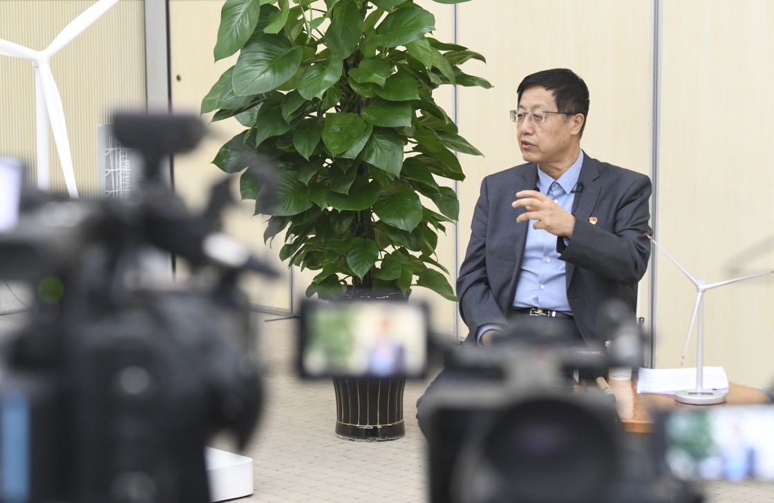 武鋼在金風(fēng)科技新疆總部公司接受媒體采訪(2022年10月3日攝)。新華社記者 王菲 攝
