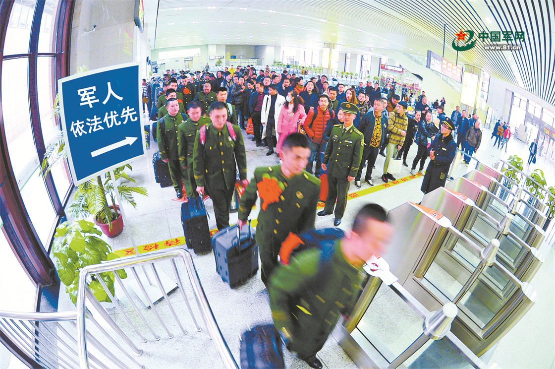 武警某部退伍老兵從軍人依法優(yōu)先通道進(jìn)站乘車返鄉(xiāng)。《解放軍畫報(bào)》資料室提供