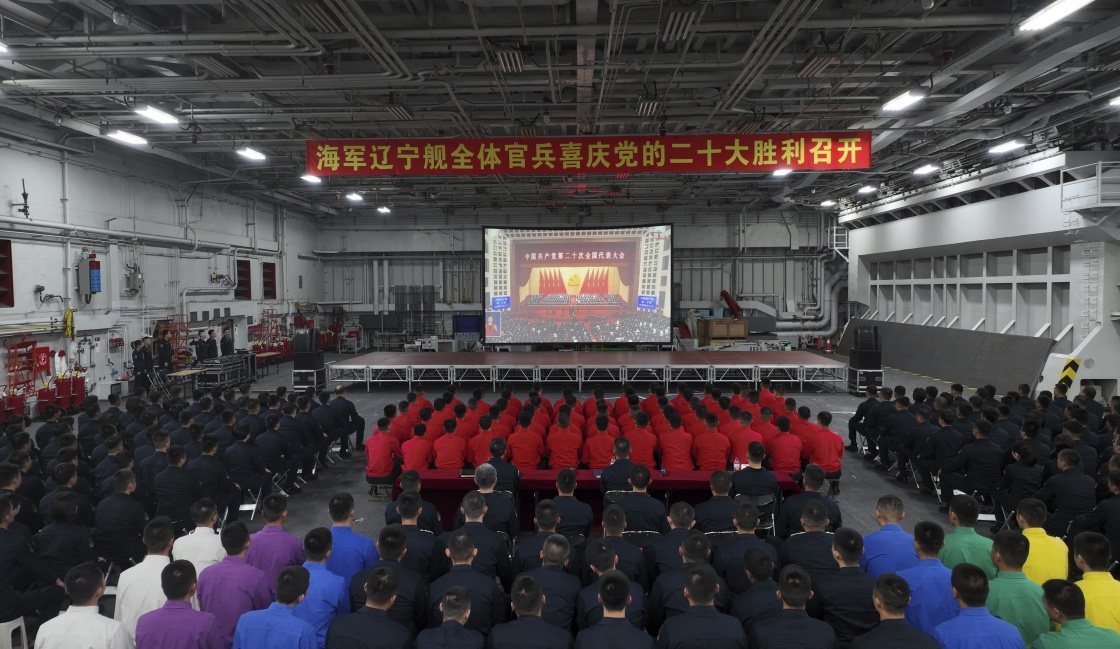 10月16日,遼寧艦全體官兵收看中國(guó)共產(chǎn)黨第二十次全國(guó)代表大會(huì)開(kāi)幕會(huì)。新華社發(fā)(任澤霖 攝)