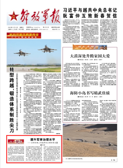 黨的二十大報(bào)告指出,要“全面加強(qiáng)軍事治理”。這是我們黨在軍事領(lǐng)域首次提出“軍事治理”這一全新命題和科學(xué)論斷。軍隊(duì)領(lǐng)導(dǎo)干部要深刻把握全面加強(qiáng)軍事治理的科學(xué)內(nèi)涵,在工作實(shí)踐中靈活運(yùn)用,不斷提升軍事治理水平。
