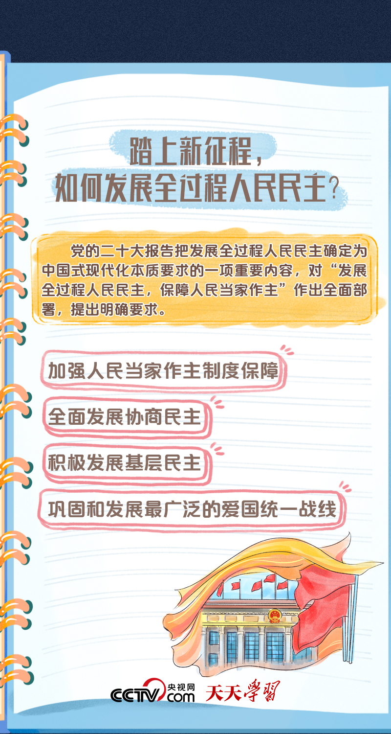 天天學習黨的二十大報告指出,發(fā)展全過程人民民主,保障人民當家作主。全過程人民民主是社會主義民主政治的本質屬性,對于新時代新征程更好發(fā)揮我國社會主義政治制度優(yōu)勢、全面建設社會主義現(xiàn)代化國家、全面推進中華民族偉大復興,具有十分重要的意義。