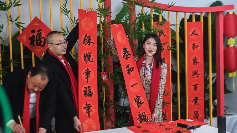 春節(jié)將至,位于陜西省西安市鄠邑區(qū)幸福佳苑社區(qū)的移民搬遷群眾以多種方式迎接新年。