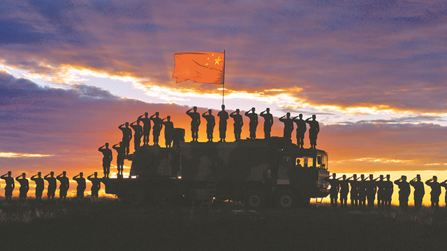 迎風(fēng)挺立,“祖國在心中”;迎風(fēng)挺立,戰(zhàn)士的身后是祖國。