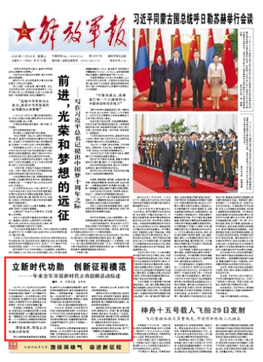 2021年11月,習(xí)近平總書記主持召開中共中央政治局會議,審議《軍隊功勛榮譽(yù)表彰條例》,強(qiáng)調(diào)“廣泛開展新時代立功創(chuàng)模活動”。這為傳承弘揚(yáng)人民軍隊光榮傳統(tǒng)、加強(qiáng)新時代軍隊功勛榮譽(yù)表彰工作指明前行方向,凝聚起奮力實現(xiàn)建軍一百年奮斗目標(biāo)的磅礴力量。
