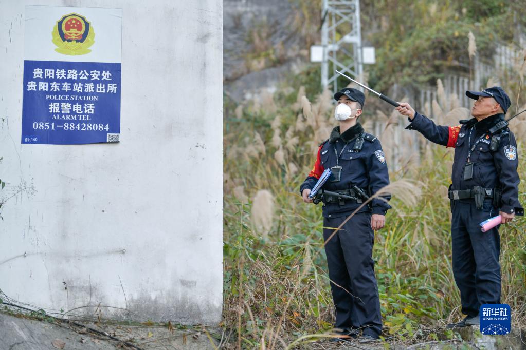 王云和謝源師徒二人開展站區(qū)巡查、督導進站安檢、接受旅客報警求助、開展鐵路法治宣傳、線路安全巡查等工作。在貴陽東車站派出所管轄的100多公里鐵路沿線,“60后”老鐵警帶著“00后”徒弟,新老互助,攜手并肩,共同守護旅客的回家路。