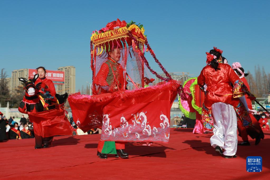 1月10日,民間藝人在安徽省淮北市濉溪縣體育場表演民俗節(jié)目。