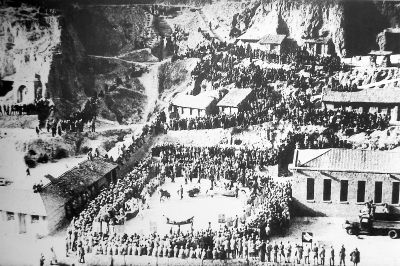 1943年春節(jié)延安各地秧歌隊到楊家?guī)X為中央機關(guān)拜年