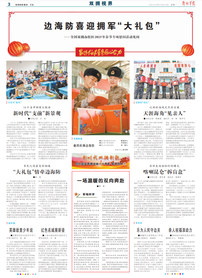 今年是全面貫徹落實(shí)黨的二十大精神的開(kāi)局之年,也是毛澤東等老一輩無(wú)產(chǎn)階級(jí)革命家倡導(dǎo)的延安雙擁運(yùn)動(dòng)80周年。這段日子,由全國(guó)雙擁辦組織的“情系邊海防官兵”春節(jié)專項(xiàng)慰問(wèn)活動(dòng),正如火如荼展開(kāi)。