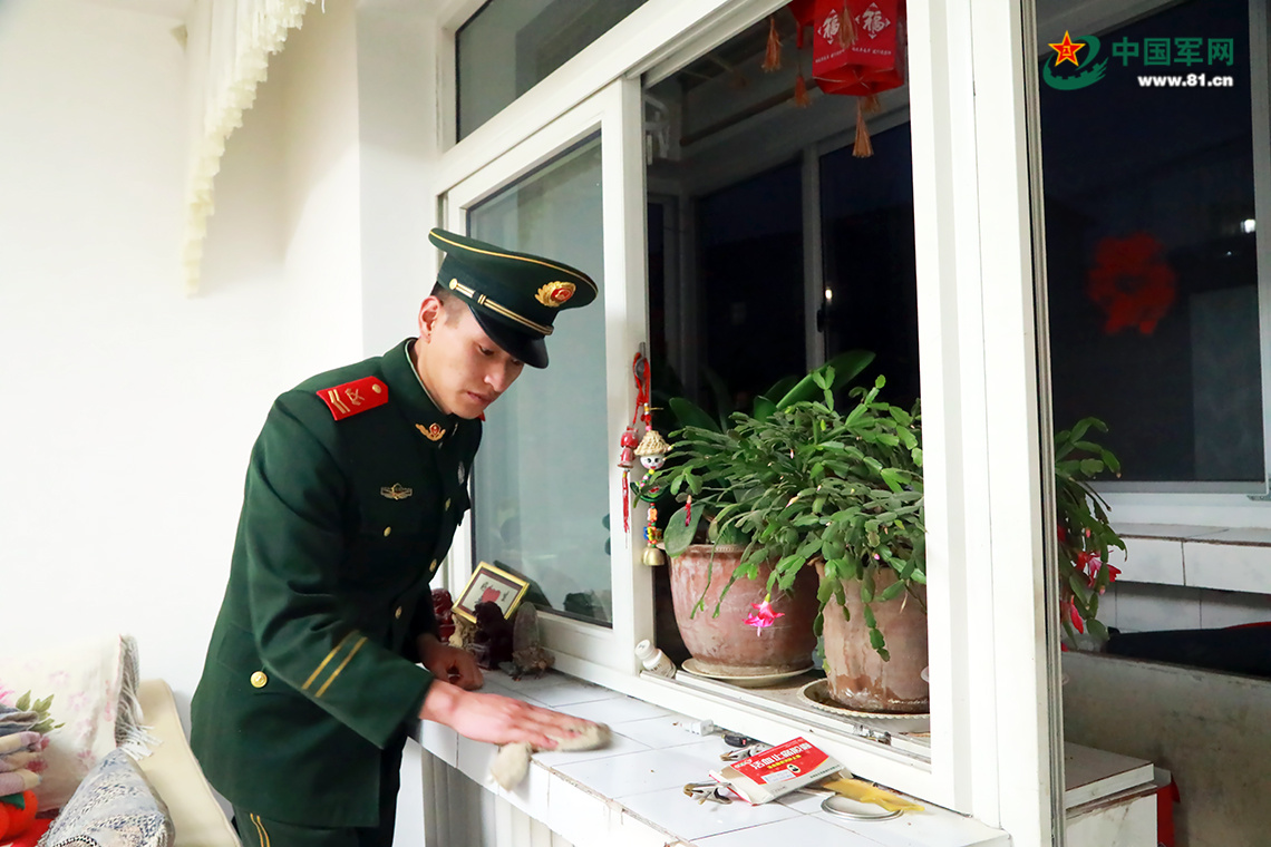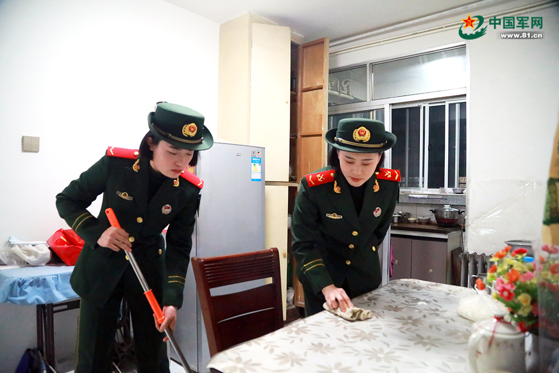 春節(jié)假期期間,空軍某部甘肅平?jīng)黾沂炕輦ゼ抑杏瓉硪蝗禾厥獾娜恕碇蠙炀G的武警官兵。“惠媽媽,我們又來看您了!”簡單地打過招呼,放下帶來的慰問品,他們就像回到自己家一樣熱火朝天地開始打掃衛(wèi)生。窗臺、灶臺、柜頂、房頂……官兵們不放過任何一個角落。