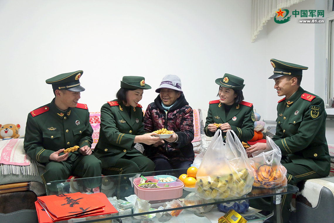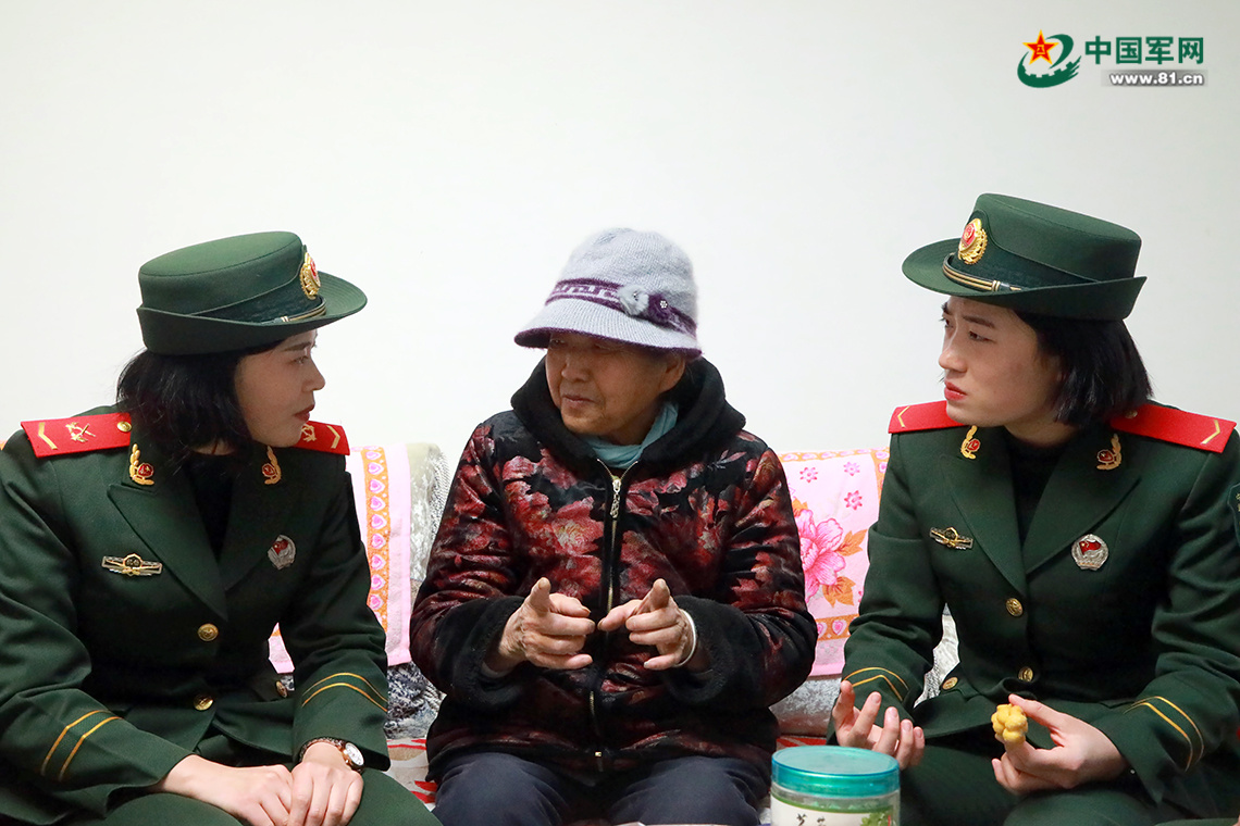 “惠媽媽,最近過得咋樣?”“好著呢,好著呢,現(xiàn)在不愁吃不愁穿的,天天就像過年一樣!”圍坐在一起,官兵拉著惠媽媽的手嘮起了家常。