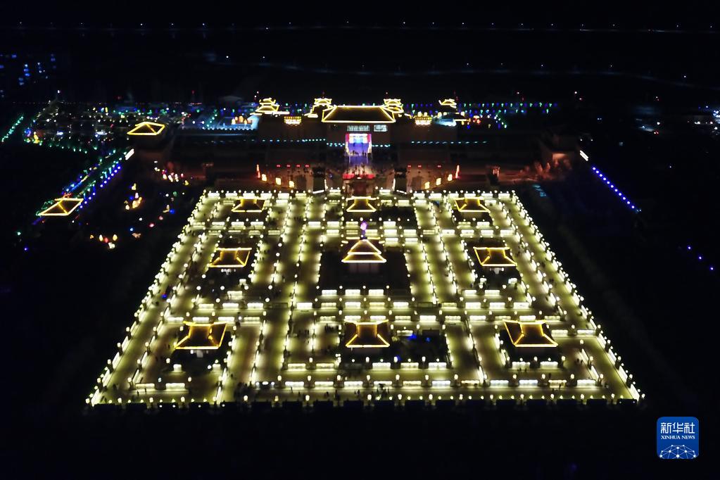 這是1月31日拍攝的九曲黃河燈陣啟燈儀式。新華社記者 范培珅 攝