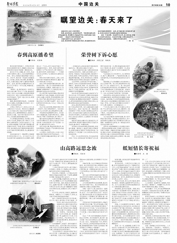 又是一年春來到。在邊防軍人心中,春天是信念,是憧憬,更是堅(jiān)守的決心。在這冰雪消融、萬物復(fù)蘇的季節(jié),一切都在走向更加美好,一切都在孕育新的希望。