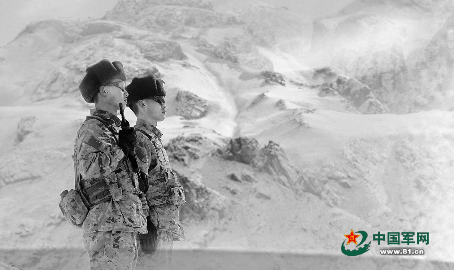 雪山下,新疆軍區(qū)契恰爾邊防連戰(zhàn)士正在站哨。解放軍報(bào)特約記者 王軍強(qiáng) 攝