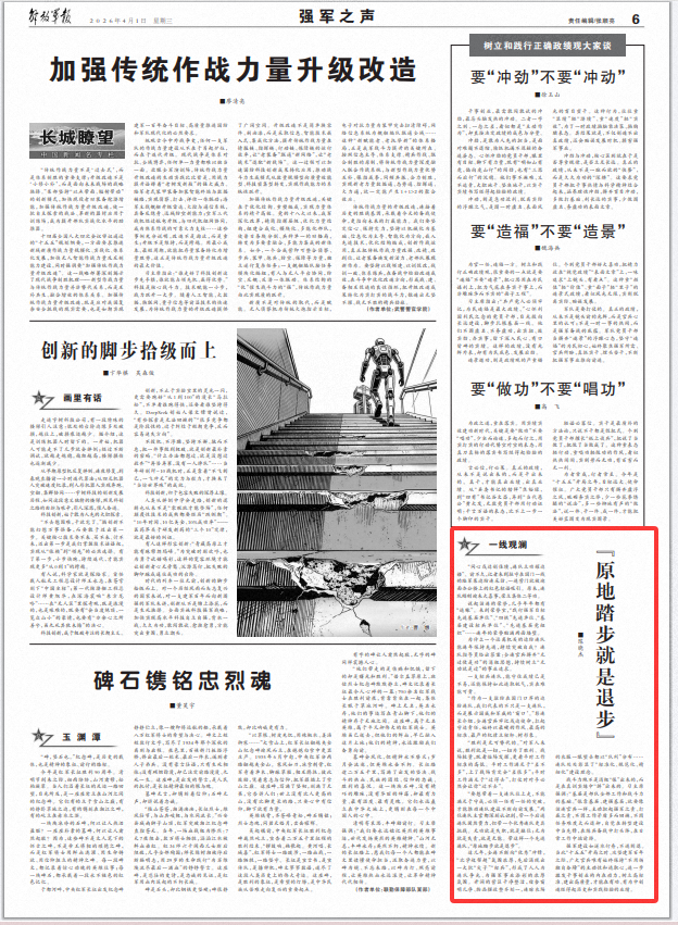 強軍建設如逆水行舟,不進則退。當此“十五五”開局之時、攻堅建軍百年之際,廣大官兵唯有始終保持“不用揚鞭自奮蹄”的主動性和進取心,進一步激發(fā)干事創(chuàng)業(yè)的內在動力,樹立高標準、建出高質量,才能在有功、有為中創(chuàng)造經得起歷史和實踐檢驗的業(yè)績。