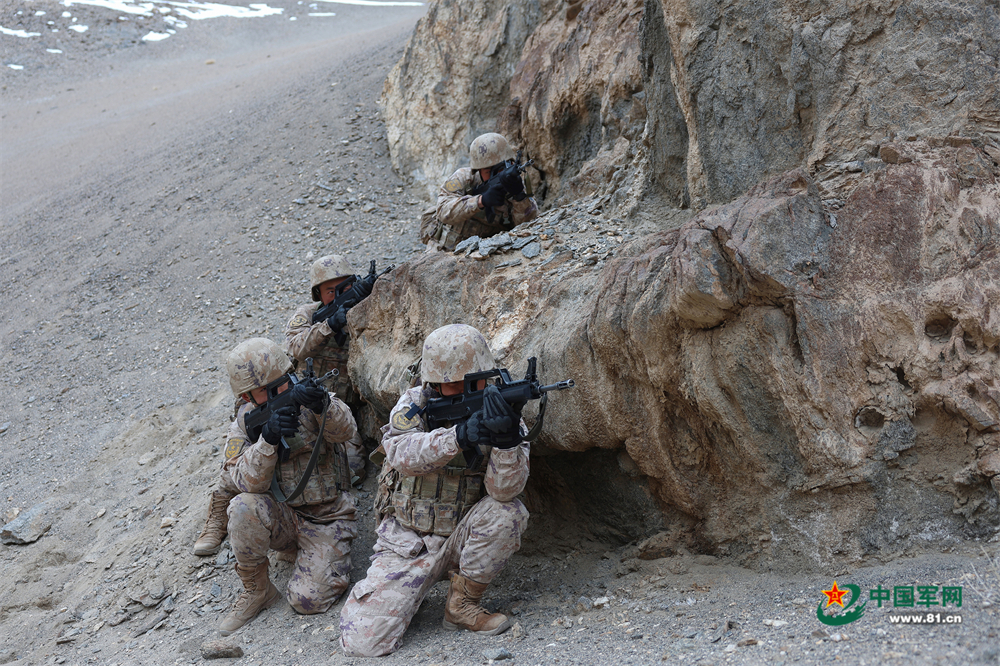 指揮員下達(dá)任務(wù)指令后,隊(duì)伍隨即踩著碎石開(kāi)始攀登。