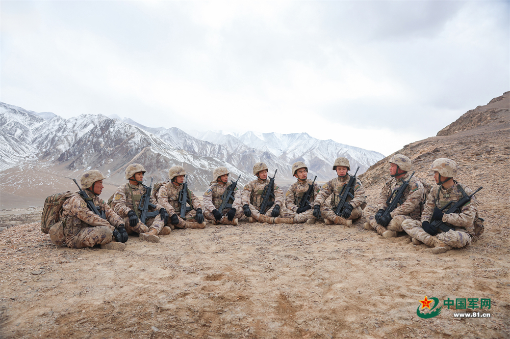 經(jīng)過(guò)近3小時(shí)的艱難攀登,隊(duì)伍終于抵達(dá)海拔4700多米的山頂。凜冽寒風(fēng)中,官兵們齊聲吶喊:“邊防有我在,祖國(guó)請(qǐng)放心!”