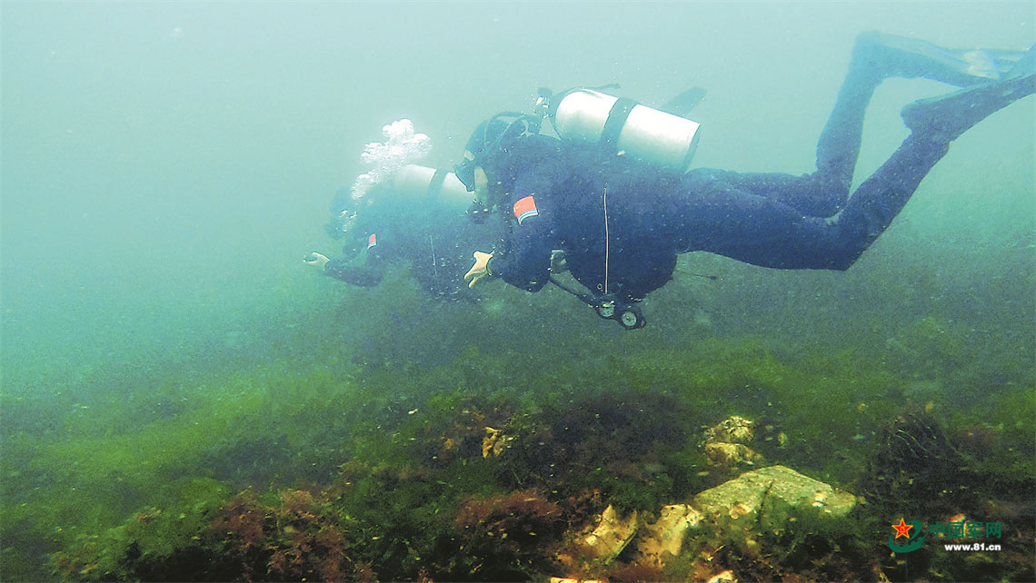 該中隊(duì)混編班組成員進(jìn)行水下訓(xùn)練。張震 攝