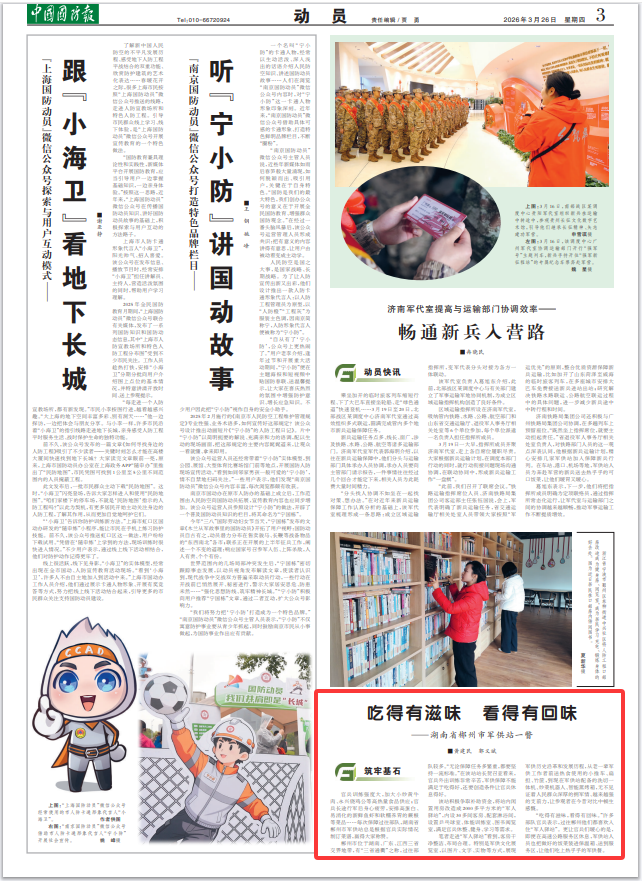 “吃得有滋味,看得有回味。”許多部隊官兵表示,過往郴州他們都喜歡入住“軍人驛站”。更讓官兵們暖心的是,即便在高速公路服務(wù)區(qū)休息,軍供站人員也把做好的飯菜裝進保溫箱、送到服務(wù)區(qū),讓他們吃上熱乎乎的軍供餐。