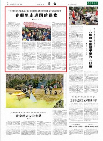 今年春假,各地創(chuàng)新形式讓青少年在愛(ài)國(guó)主義教育和國(guó)防教育中厚植家國(guó)情懷——