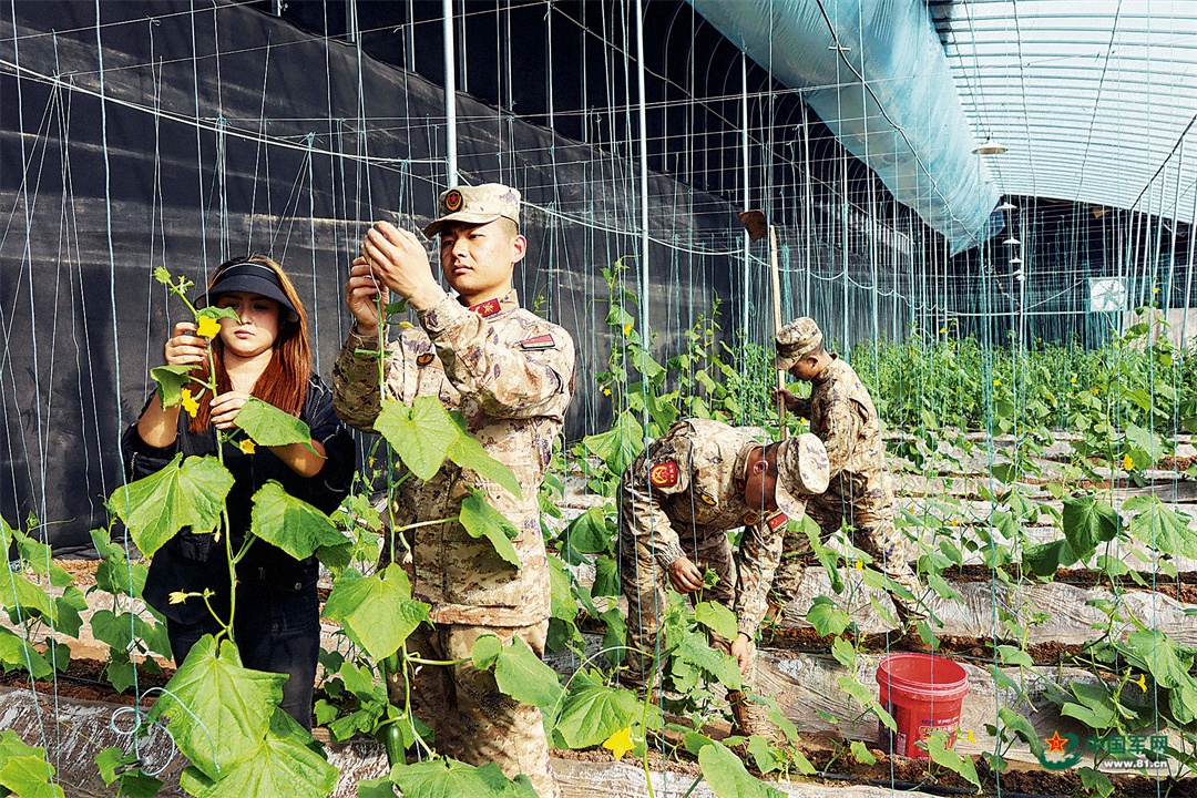 3月下旬,新疆柯坪縣人武部組織民兵走進(jìn)幫扶村溫室大棚開(kāi)展助農(nóng)活動(dòng)。