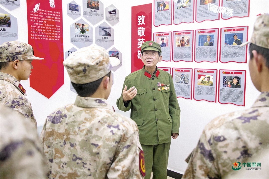 日前,安徽省長豐縣崗集鎮(zhèn)武裝部邀請(qǐng)老兵張廣紳為民兵講戰(zhàn)斗故事。王權(quán) 攝