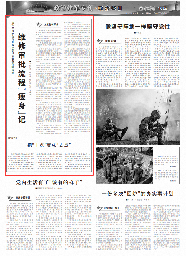 這件事也啟示我們:為基層官兵服務(wù)、為戰(zhàn)斗力服務(wù),有時(shí)候,從一張審批單這樣的事情做起,就挺好。