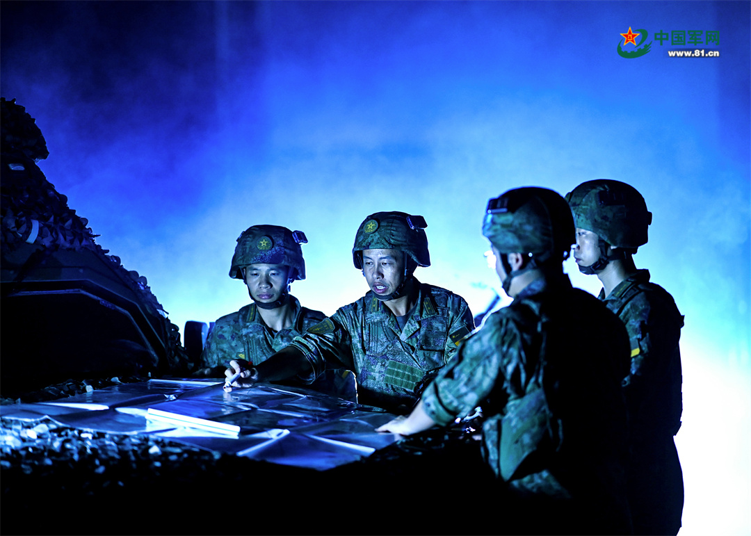 火箭軍某旅發(fā)射二營(yíng)在夜間演訓(xùn)時(shí)組織戰(zhàn)斗籌劃,制訂行動(dòng)方案。劉明松攝