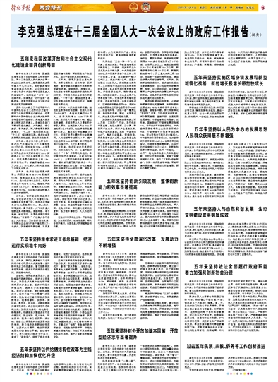 新華社北京3月5日電 國務院總理李克強5日在作政府工作報告時說,五年來,我們堅持創(chuàng)新引領發(fā)展,著力激發(fā)社會創(chuàng)造力,整體創(chuàng)新能力和效率顯著提高。