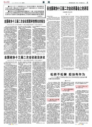 這次會議是在全面建成小康社會進入關(guān)鍵之年召開的,中共中央高度重視,各有關(guān)方面大力支持。中共中央總書記、國家主席、中央軍委主席習(xí)近平等黨和國家領(lǐng)導(dǎo)同志,出席大會開幕會和閉幕會,深入界別小組聽取意見和建議,與委員共商國是。廣大政協(xié)委員認真學(xué)習(xí)貫徹習(xí)近平新時代中國特色社會主義思想,以高度的政治責(zé)任感和歷史使命感,深入討論政府工作報告和其他報告,認真審議全國政協(xié)常委會工作報告和提案工作情況報告等文件,圍繞統(tǒng)籌推進“五位一體”總體布局、協(xié)調(diào)推進“四個全面”戰(zhàn)略布局,緊扣決勝全面建成小康社會,深入?yún)f(xié)商、積極建言,取得重要成果。這次會議充分發(fā)揚民主、廣泛凝聚共識,是一次求真務(wù)實、團結(jié)奮進的大會,展現(xiàn)了人民政協(xié)這一專門協(xié)商機構(gòu)的獨特優(yōu)勢,彰顯了中國特色社會主義民主政治的生機活力。