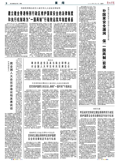 支持建立健全香港特區(qū)維護國家安全的法律制度和執(zhí)行機制