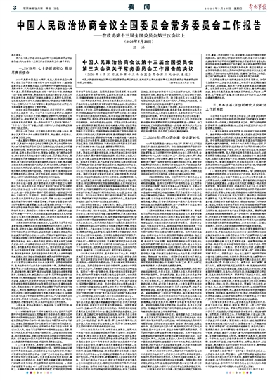 中國人民政治協(xié)商會議第十三屆全國委員會第三次會議關(guān)于常務(wù)委員會工作報(bào)告的決議