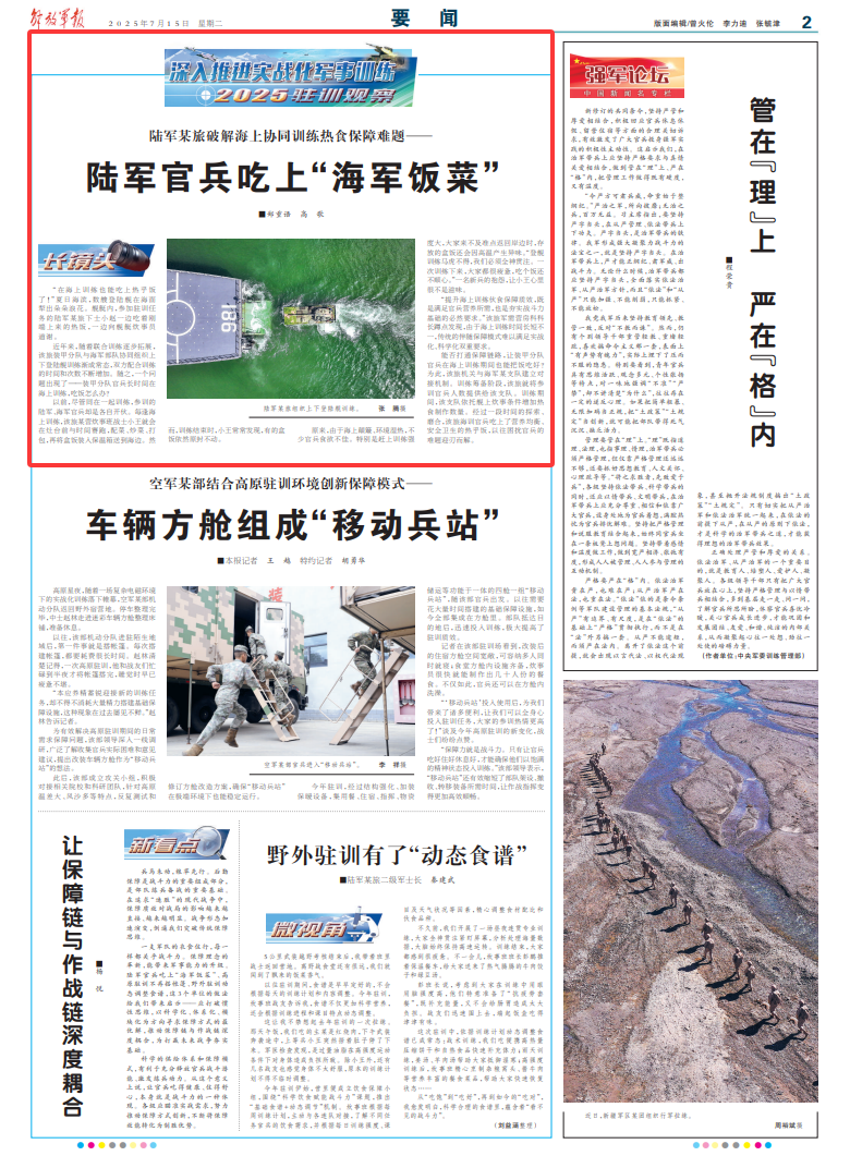陸軍官兵吃上“海軍飯菜”