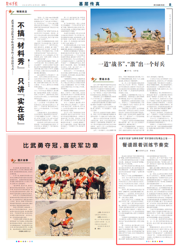 “炊事班不是星級(jí)酒店的大廚,做菜不僅要好吃,還得讓大家吃了有好的身體狀態(tài)!”戰(zhàn)友的真誠(chéng)反饋,令賈江濤臉上發(fā)燙。