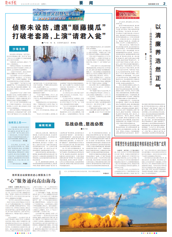 解放軍報訊 劉石祥、記者孫興維報道:日前,記者從中央軍委后勤保障部有關(guān)部門獲悉,為提高后勤管理科學化、法治化、精細化水平,軍需烹飪專業(yè)技能鑒定考核系統(tǒng),近日在全軍推廣試用。該系統(tǒng)由中央軍委后勤保障部軍需能源技術(shù)服務中心和聯(lián)勤保障部隊工程大學某基地聯(lián)合研發(fā),將推動軍需烹飪專業(yè)技能鑒定考核更具透明性、時效性和公平性。