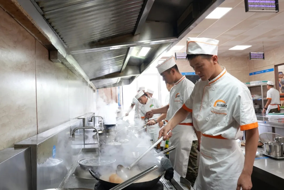 培訓(xùn)期間教員由簡(jiǎn)入繁,從刀工、火候、翻鍋等技巧入手,幫助學(xué)員們熟練掌握烹飪基本功,實(shí)現(xiàn)下刀有“神”、控火有“度”、提鍋有“韻”。他們還特邀地方培訓(xùn)機(jī)構(gòu)名廚進(jìn)行授課,突出對(duì)特色菜、家常菜、大鍋菜烹飪手法的現(xiàn)場(chǎng)指導(dǎo),并穿插進(jìn)行營(yíng)養(yǎng)搭配知識(shí)、小菜腌制、食品及炊事安全等方面的學(xué)習(xí),提升炊事員隊(duì)伍伙食保障能力。