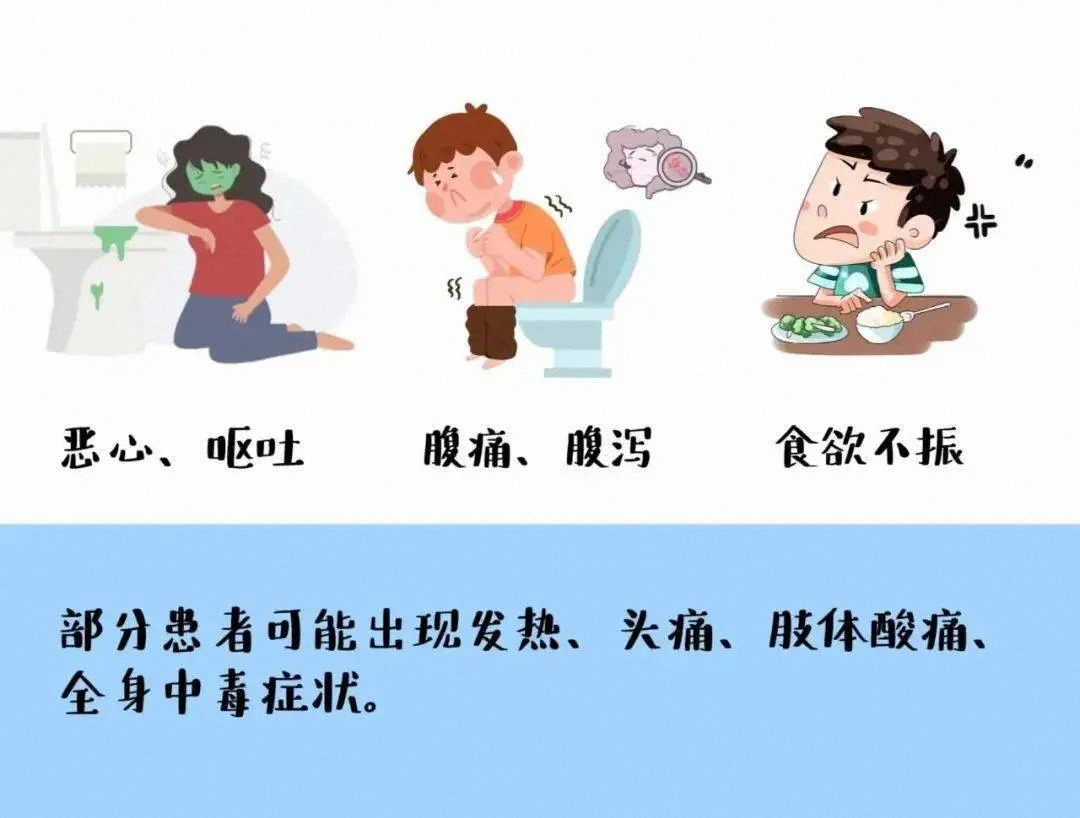 感染型食物中毒以急性腸胃炎為主要表現(xiàn),起病急、病程短、恢復快。癥狀有腹痛腹瀉、嘔吐、無力、頭暈等,嚴重者可有脫水、休克等,常見于沙門氏菌、副溶血性弧菌和變形桿菌中毒。