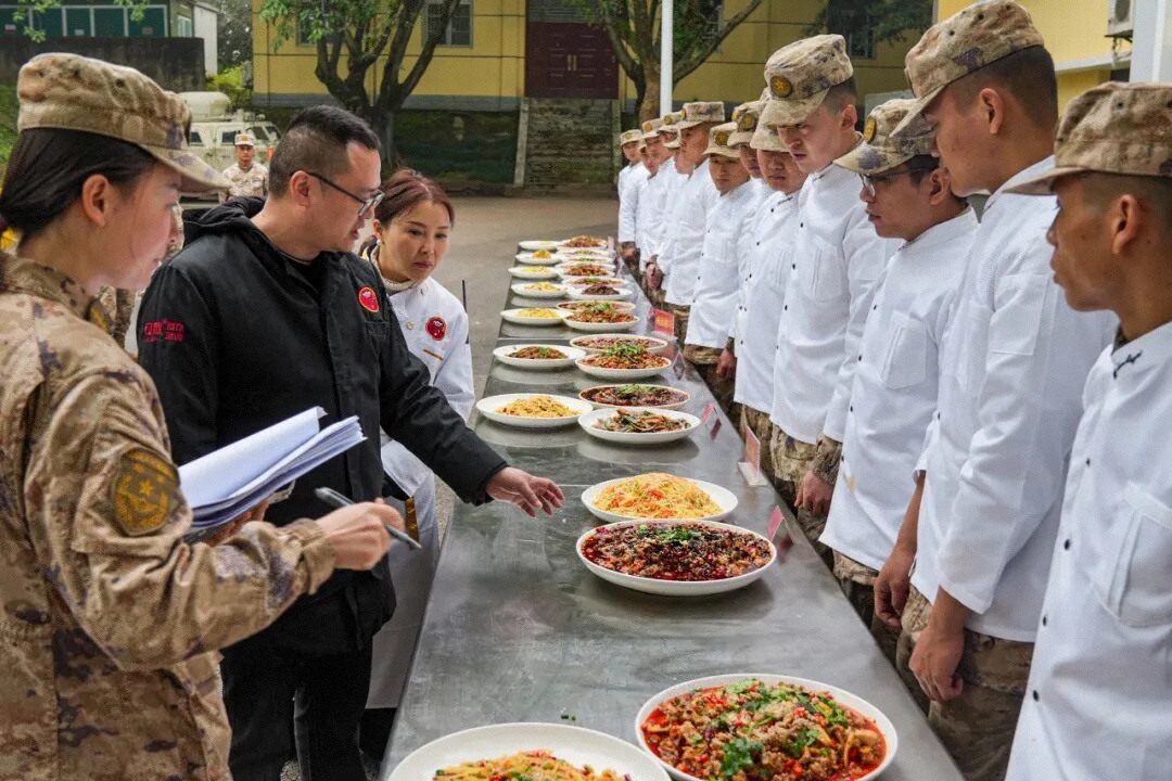 點火熱灶揮勺翻炒、案板配菜刀工塑形、煎炸蒸煮調味調色……近日,第77集團軍某旅舉辦了一場炊事專業(yè)集訓比武,9支參賽隊激烈角逐,現(xiàn)場鍋氣蒸騰,陣陣香氣撲鼻而來。