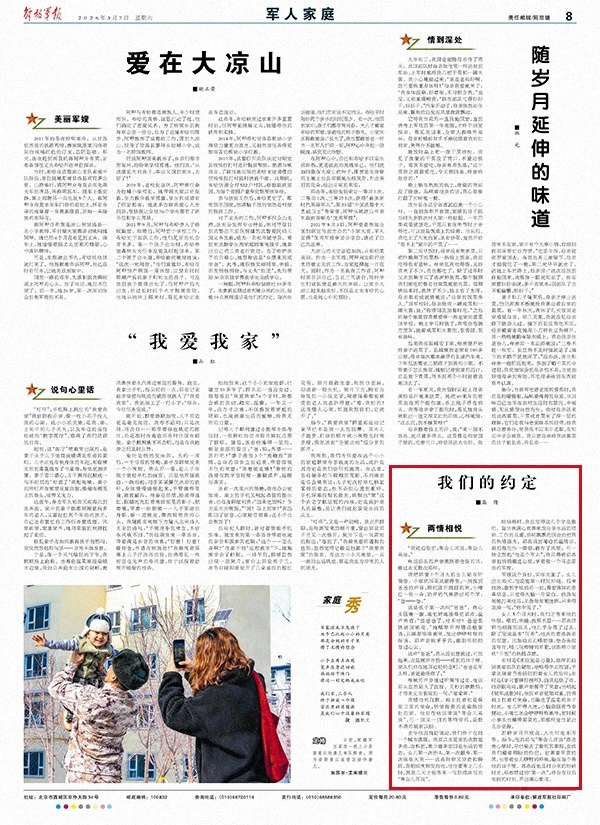 若將歲月開成花,人生何處不芳華。如今,他的那句“等會兒再說”落進我心里時,早已褪去了最初的委屈,變成我們藏著期盼的約定。它裹著軍營的風,也帶著女兒咿呀的呼喚,融在每個等他的日子里。那些沒能及時分享的細碎時光,那些錯過的“第一次”,終會在日后相擁的時刻,開出滿心繁花。