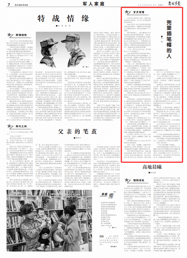 從部隊新聞報道員,到《空軍文藝》編輯,退役后在《軍嫂》雜志社任編輯、編輯部主任并成為中國作家協(xié)會會員……我用一步步的踏實與努力,終于抹平了那時的謊言。這也得益于翠平給我機(jī)會,并一如既往地支持著我。