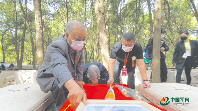 在山東省濟(jì)南市英雄山革命烈士陵園,來自東營(yíng)市利津縣74歲的李慶英,在丈夫岳增和的陪同下,終于“見”到了自己的父親。肅立在父親墓前,她幾度哽咽,難掩悲傷之情。