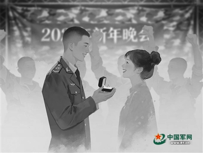 節(jié)目表演完畢,楊光愷深吸一口氣,示意戰(zhàn)友們按計(jì)劃行動(dòng)。楊光愷的主持人搭檔朗聲說:“最后的特別環(huán)節(jié),是我們的戰(zhàn)友為一位姑娘精心準(zhǔn)備的……”