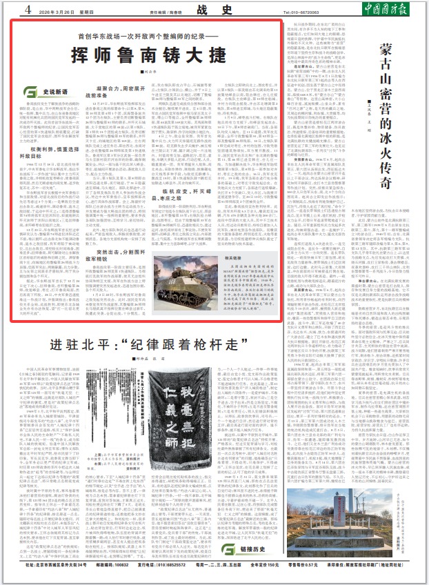 首創(chuàng)華東戰(zhàn)場(chǎng)一次殲敵兩個(gè)整編師的紀(jì)錄——
