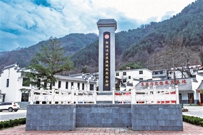 位于陜西省商洛市山陽(yáng)縣袁家溝口村的鄂陜邊區(qū)蘇維埃政府紀(jì)念碑。資料照片
