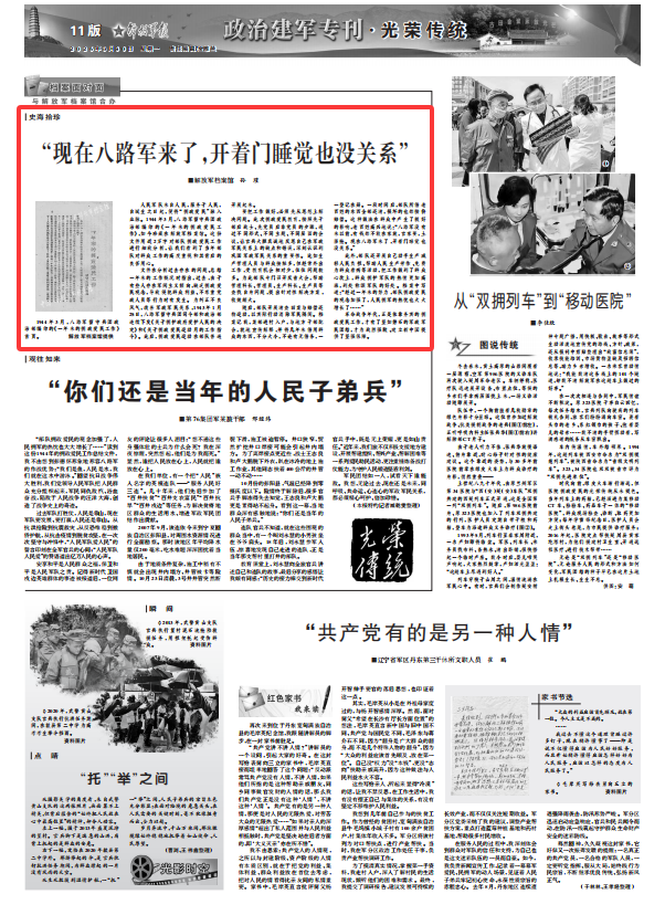 此外,部隊(duì)還開展自己動(dòng)手生產(chǎn)減輕人民負(fù)擔(dān)、幫助人民生產(chǎn)勞作、免費(fèi)為群眾看病等活動(dòng),把工作做到了群眾心坎上,群眾擁護(hù)軍隊(duì)的熱情更加高漲,到處稱頌軍隊(duì)的好處。檔案中寫道:“經(jīng)過一年來的努力,部隊(duì)擁政愛民的觀念加強(qiáng)了,人民擁軍的熱忱也大大增長了……”