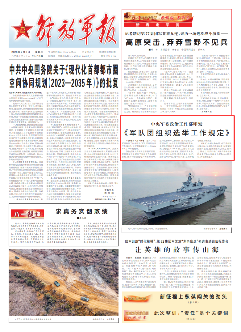解放軍報北京2月2日電 近日,中央軍委政治工作部印發(fā)《軍隊團組織選舉工作規(guī)定》(以下簡稱《規(guī)定》),自2026年1月30日起施行。
