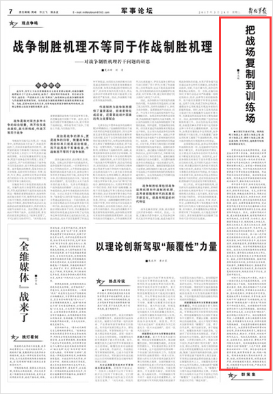 今天的《解放軍報》刊文指出,推進實戰(zhàn)化軍事訓練應緊盯作戰(zhàn)對手練,做到戰(zhàn)略上知敵之本、戰(zhàn)役上知敵之變、戰(zhàn)術上知敵之長、指揮上知敵之將,既以敵為師、學其所長,也找準其短板弱項和致命死穴。