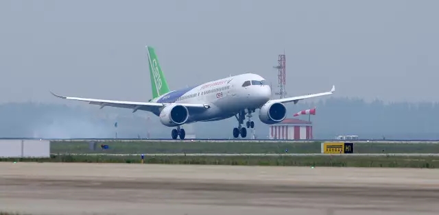 2017年5月5日14時(shí),中國自主研發(fā)的C919大型客機(jī)由機(jī)長蔡俊、試飛員吳鑫駕駛,搭載著觀察員錢進(jìn)和試飛工程師馬菲、張大偉,從浦東國際機(jī)場第四跑道起飛,接著在南通東南3000米高度規(guī)定空域內(nèi)巡航平穩(wěn)飛行79分鐘,圓滿完成首飛課目,然后于15時(shí)19分安全返航著陸。對于中國來說,C919首飛成功是一個(gè)歷史性的時(shí)刻,標(biāo)志著中國航空工業(yè)開始躋身于世界大型民航客機(jī)制造國的行列。