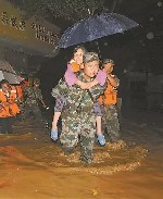 來到現(xiàn)場(chǎng),官兵們發(fā)現(xiàn),一間不足30平方米的房間內(nèi),1名老人和6名兒童站在狹窄的床上瑟瑟發(fā)抖。“不要怕,我們來了!”中士王崇行將自己身上的救生衣穿在老人身上,隨后將她背起。老人激動(dòng)地不停道謝。途中,老人不忍心讓戰(zhàn)士受累,幾次要求下來自己行走。“我背著不累,大姨!”王崇行沒有停下腳步。