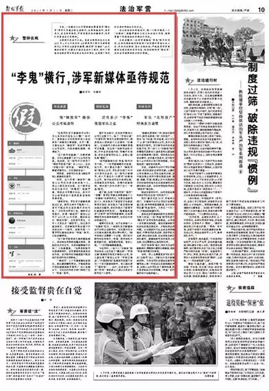 今天出版的《解放軍報》在集中曝光了一批涉軍新媒體“李鬼”賬號的同時,也熱切期盼相關(guān)職能部門切實履行審核認證義務(wù),形成信息聯(lián)動、綜合治理機制,嚴格監(jiān)管涉軍新媒體運營過程和發(fā)布內(nèi)容,徹底切斷利用“解放軍”這塊金字招牌謀取名利的渠道。