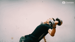 3.大臂與地面平行時(小臂與大臂膀成90度或略小于90度),保持幾秒鐘,然后用胸部的力量向上推啞鈴,雙臂并攏,做三角行運動——不要讓啞鈴在頂部互相接觸;